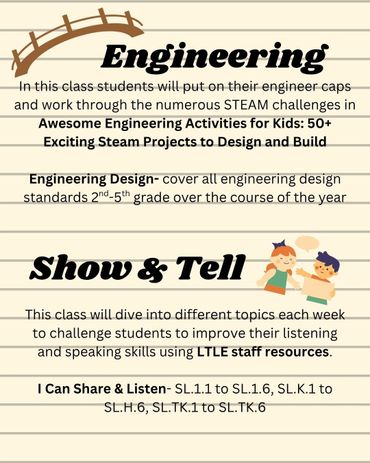 One-time classes are intended to take topics from Academic Adventurers or are inspired by the seasons. Workshops are all hands-on and revolve around state-standards. You may set up workshops individually or as a group.